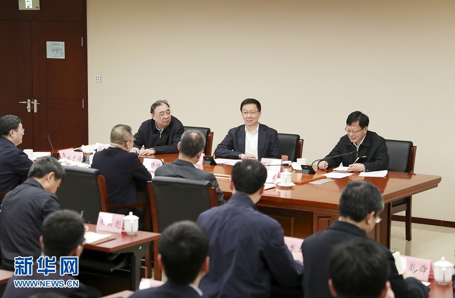 1月9日,中共中央政治局常委、國(guó)務(wù)院副總理韓正在國(guó)家醫(yī)療保障局召開(kāi)座談會(huì)?!⌒氯A社記者 丁海濤 攝