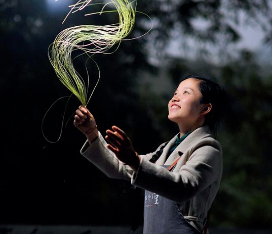 貴州省級(jí)非物質(zhì)文化遺產(chǎn)“赤水竹編”傳承人楊昌芹在展示新制作的竹絲(2019 年11 月11 日攝)。赤水市現(xiàn)有竹林面積132.8 萬(wàn)畝,竹產(chǎn)業(yè)是當(dāng)?shù)剞r(nóng)民增收的重要渠道之一 楊文斌 攝