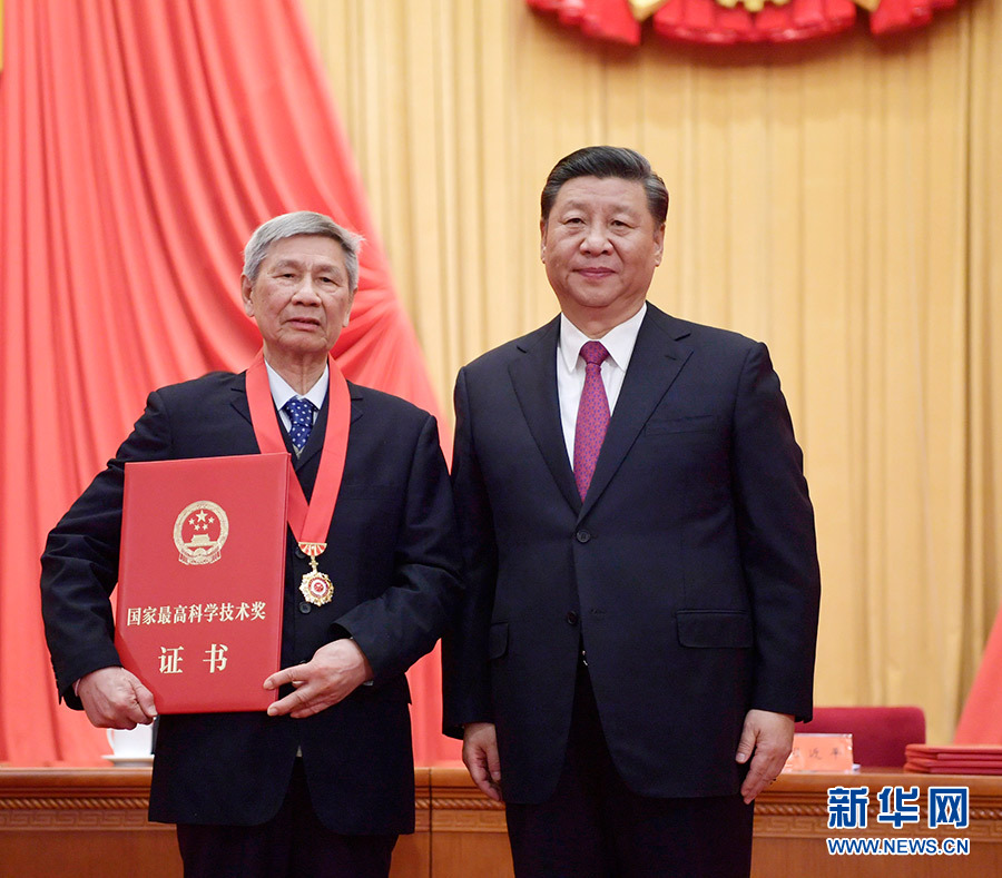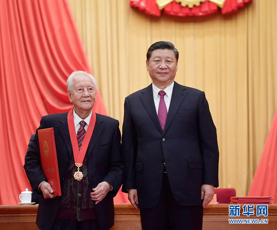 1月10日,2019年度國家科學技術獎勵大會在北京人民大會堂隆重舉行。中共中央總書記、國家主席、中央軍委主席習近平向獲得2019年度國家最高科學技術獎的原中國船舶重工集團公司第七一九研究所黃旭華院士頒獎。 新華社記者 李學仁 攝