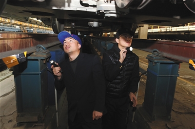 “這樣的油泥是正常,但如果它旁邊的傳感器也滲出了油泥,我們就得注意了?!睓z查到牽引電機的齒輪箱時,皮春成指著它旁邊的一個乒乓球大小的圓形突起物跟徒弟說,“這個齒輪箱溫度傳感器探針,功能是檢測有齒輪箱的溫度有無異常,一些隱蔽的傷損,通過技術(shù)手段看不出來,只能通過外觀上的蛛絲馬跡去判斷,得不斷積累經(jīng)驗。”皮春成告訴記者,今年春運自己的徒弟楊雪松就將要獨自完成一些列車的日常檢修任務(wù),趁著白天不算特別忙,自己還是想多帶他走上幾趟。