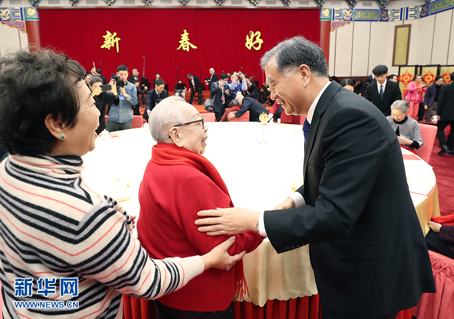 1月15日,全國政協(xié)在北京舉行已故知名人士的夫人2020年春節(jié)茶話會(huì),大家歡聚一堂,共迎新春。中共中央政治局常委、全國政協(xié)主席汪洋出席茶話會(huì)。 新華社記者 姚大偉 攝