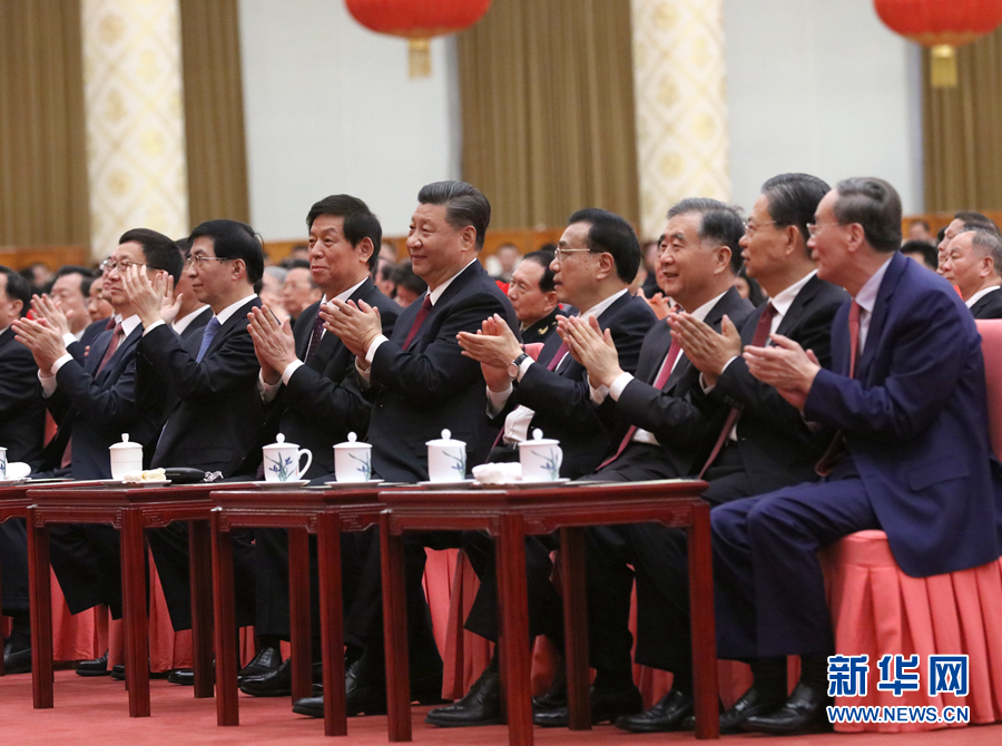 黨和國家領導人李克強、栗戰(zhàn)書、汪洋、王滬寧、趙樂際、韓正、王岐山等出席團拜會,李克強主持。
