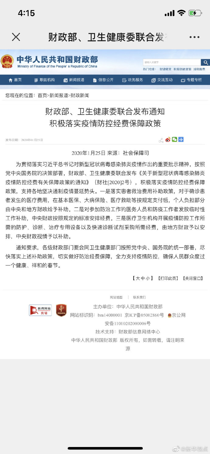 記者25日從財政部獲悉,財政部、衛(wèi)生健康委聯(lián)合發(fā)布通知,對于確診患者發(fā)生的醫(yī)療費用,在基本醫(yī)保、大病保險、醫(yī)療救助等按規(guī)定支付后,個人負擔部分由中央和地方財政給予補助。對參加防治工作的醫(yī)務人員和防疫工作者發(fā)放臨時性工作補助,中央財政按照規(guī)定的標準安排經(jīng)費。醫(yī)療衛(wèi)生機構(gòu)開展疫情防控工作所需的防護、診斷、治療專用設備以及快速診斷試劑采購所需經(jīng)費,由地方財政予以安排,中央財政視情予以補助。(記者郁瓊源)