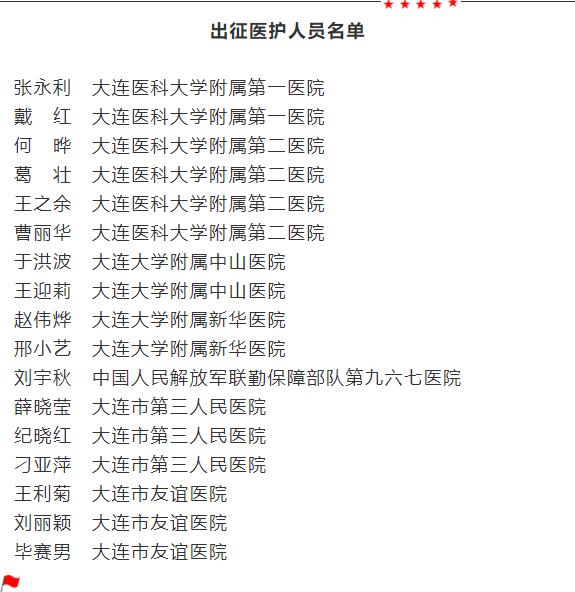 記者從大連市衛(wèi)生健康委獲悉,我市確定了17名醫(yī)護(hù)人員參與到遼寧第一批援助湖北應(yīng)對(duì)新型冠狀病毒感染的肺炎疫情醫(yī)療隊(duì)中,今日早上將出征馳援。