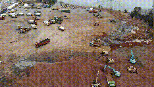 經(jīng)過一天一夜施工,新型冠狀病毒隔離房項目入場挖機41臺,推土機15臺,壓路機4臺,自卸車40臺,327名管理人員和336名工人集結完畢,累計平整全部場地9000平方米,內(nèi)轉土方2500立方米。