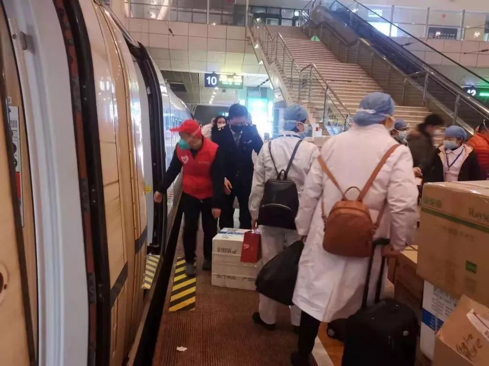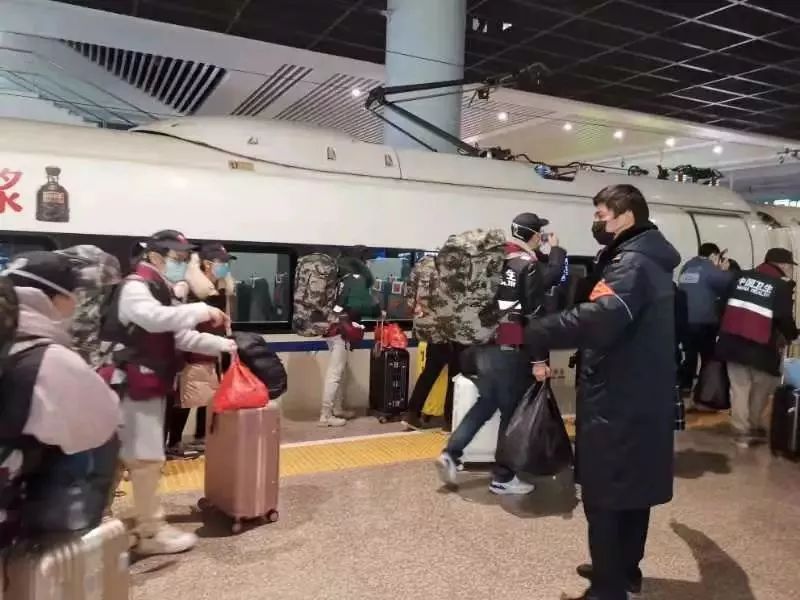 醫(yī)療隊員們搭乘高鐵緊急出發(fā)