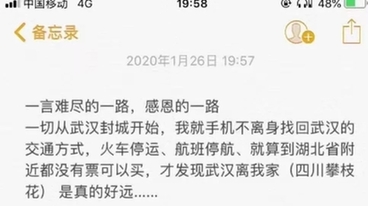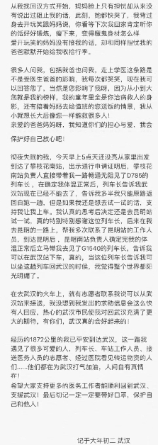 “經(jīng)歷約1872公里的我已平安到達(dá)武漢,這一路我遇見(jiàn)了很多可愛(ài)的人,列車長(zhǎng)、車站工作人員……他們都在為武漢打氣加油,人間自有真情在!”1月26日,白衣天使郎冰凝在自己的手機(jī)里敲出了一段動(dòng)人的文字,文字的背后是鐵路人傾情護(hù)送她奔赴武漢的暖心故事。