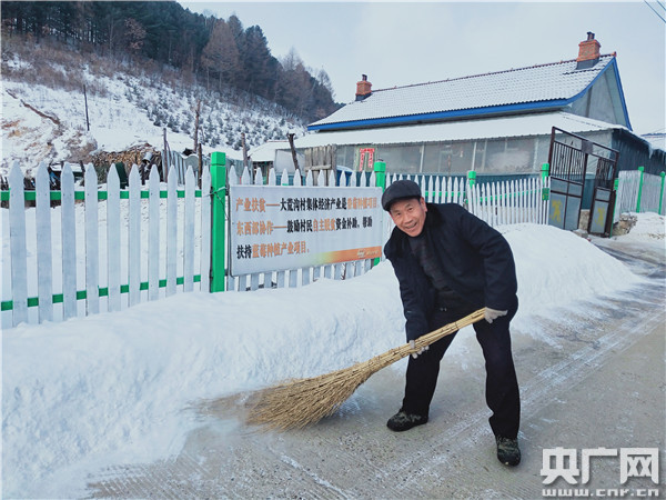 記者來(lái)到王召運(yùn)老人家時(shí),他正在掃雪(記者 王啟慧 攝)