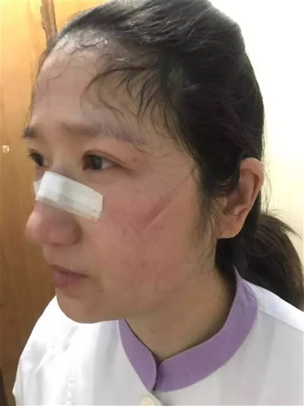 連續(xù)穿戴防護(hù)服6個(gè)小時(shí),臉上留下深深的“最美印痕”。