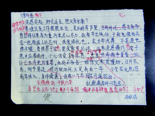 大年初一,孫婉清決定將這份隱藏多日的小秘密公布于父親,她一早就把這幅寫得工工整整的家書拍照給父親看,以示新年的問候與祈愿。