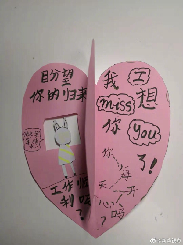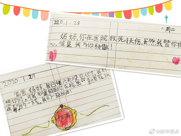 他們是醫(yī)生,是護士,也是爸爸和媽媽。面對疫情,華中科技大學(xué)同濟醫(yī)院的醫(yī)生護士們勇敢前行。在孩子們眼里,他們是值得驕傲的爸爸和媽媽。戳圖,看孩子們用自己的方式表達思念和鼓勵。(記者黎昌政、胡喆) ????