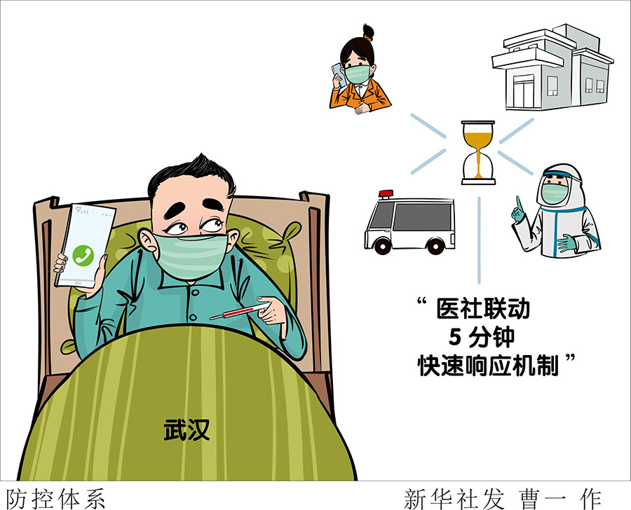 武漢青山區(qū)鋼花村街110社區(qū)書記馮丹介紹稱,鋼花村街制定了“醫(yī)社聯(lián)動5分鐘快速響應(yīng)機(jī)制”:遇到有居民反映相關(guān)癥狀時,社區(qū)工作人員第一時間通報社區(qū)衛(wèi)生服務(wù)中心,值班醫(yī)生5分鐘內(nèi)電話聯(lián)系疑似患者或家屬,作出是否需要上門診斷或轉(zhuǎn)診的預(yù)判,并反饋社區(qū);醫(yī)生判斷不需上門的,由社區(qū)網(wǎng)格員指導(dǎo)居民居家觀察;醫(yī)生判斷需要上門的,則由社區(qū)申請應(yīng)急車,先到社區(qū)衛(wèi)生服務(wù)中心接醫(yī)護(hù)人員,再會同社區(qū)工作者上門,將患者及醫(yī)護(hù)人員送往發(fā)熱門診。