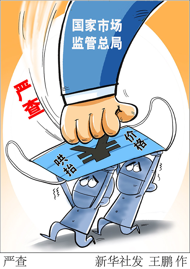 新華社北京2月8日電(記者劉開(kāi)雄、屈婷)8日,在國(guó)務(wù)院聯(lián)防聯(lián)控機(jī)制新聞發(fā)布會(huì)上,國(guó)家市場(chǎng)監(jiān)管總局有關(guān)部門負(fù)責(zé)人表示,各級(jí)市場(chǎng)監(jiān)管部門依法從嚴(yán)從重從快打擊少數(shù)經(jīng)營(yíng)者串通漲價(jià)、哄抬價(jià)格、價(jià)格欺詐等違法行為,堅(jiān)決維護(hù)防疫用品市場(chǎng)價(jià)格秩序。