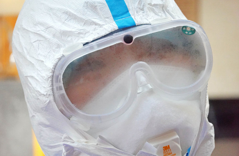 每次出門采訪都如臨大敵:先換好外出的衣裳、戴好醫(yī)用手套、戴好護目鏡,然后再小心翼翼地在臉上加上一個或兩個口罩,在門口換上出門的鞋,最后再背上采訪設備——每次做完這些的時候,作為胖子的我身上已經(jīng)開始冒汗并且氣喘吁吁。如果要去醫(yī)院采訪,有時候還要再穿上一件防護服。這樣的裝備,出門走一圈其實已經(jīng)很難受了,而我還要隔著不斷產(chǎn)生霧氣的護目鏡拍照,要不斷地移動、尋找最好的拍攝角度和位置,采訪的時候更要記下一個個口罩后面的名字、故事......這樣的采訪狀態(tài)對我而言,從未曾經(jīng)歷過——多年前,我曾在利比亞做過戰(zhàn)地記者,也曾被武裝分子用槍指著腦袋,但這次在武漢,我不知道那些危險的“敵人”究竟藏在何方,也許就在無處不在的空氣里!