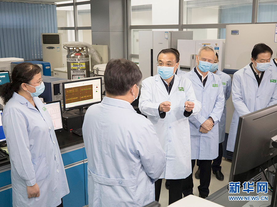 在病原系統(tǒng)生物學(xué)重點(diǎn)實(shí)驗(yàn)室,李克強(qiáng)詳細(xì)了解抗病毒藥物篩選等情況。得知目前已篩選出藥物啟動(dòng)臨床試驗(yàn),并正在研制滿足不同臨床需求的藥物,李克強(qiáng)說,有效藥物是打贏這場(chǎng)阻擊戰(zhàn)的重要制勝武器,是提高患者治愈率、降低病死率的關(guān)鍵,抗疫一線的醫(yī)護(hù)人員和患者對(duì)此十分期盼。醫(yī)藥等相關(guān)領(lǐng)域科研工作者要與時(shí)間賽跑,集中各方智慧,加強(qiáng)與臨床合作,深入研究治愈病例的治療方案,全力開展藥品研發(fā)攻關(guān)。他叮囑隨行有關(guān)同志,要對(duì)有效藥物以及疫苗研制加大財(cái)力物力人力等各方面支持和保障。李克強(qiáng)強(qiáng)調(diào),藥物和疫苗研制一定要尊重科學(xué)、遵循規(guī)律,把安全性有效性作為根本標(biāo)準(zhǔn)。有了有效藥物,就能給患者帶來福音,給群眾送上“定心丸”。