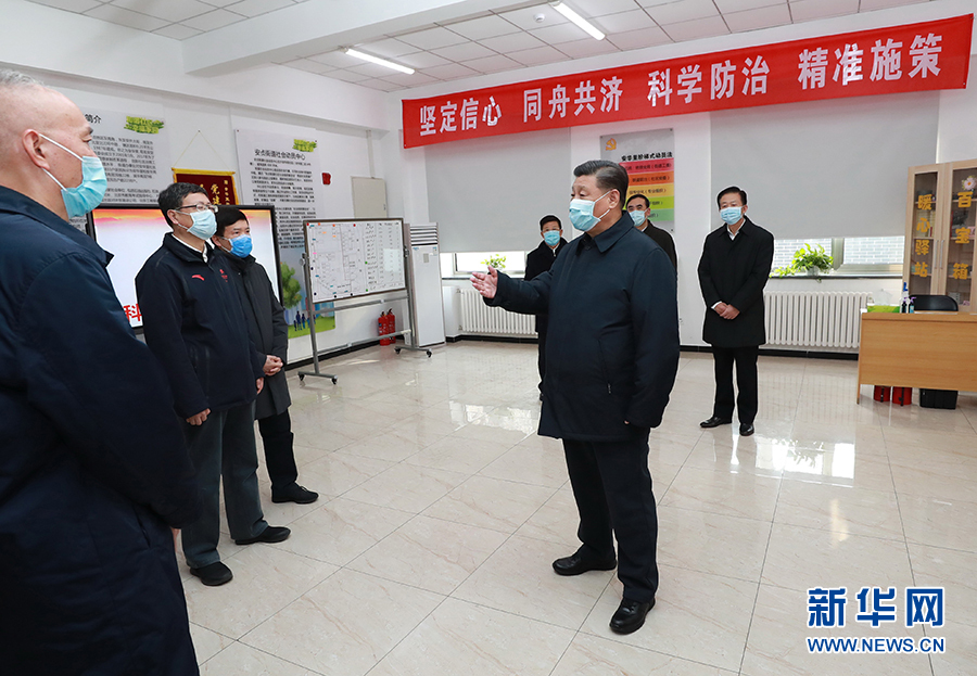 2月10日,中共中央總書(shū)記、國(guó)家主席、中央軍委主席習(xí)近平在北京調(diào)研指導(dǎo)新冠肺炎疫情防控工作。這是習(xí)近平在朝陽(yáng)區(qū)安貞街道安華里社區(qū),了解基層一線疫情聯(lián)防聯(lián)控情況。 新華社記者 龐興雷 攝