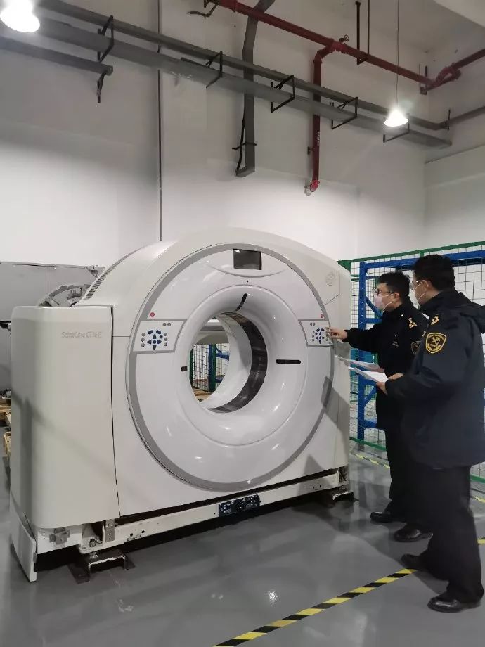 2月7日,重慶海關(guān)所屬西永海關(guān)快速通關(guān)一臺(tái)重慶明峰醫(yī)療有限公司研發(fā)的CT機(jī),該臺(tái)CT機(jī)將用于組裝成“方舟”CT系統(tǒng)(新型應(yīng)急專(zhuān)用CT裝置)后發(fā)送到武漢,安裝在方艙醫(yī)院,用于新冠肺炎疑似病例篩查。