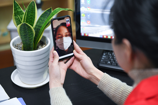 2月4日,浙江慈溪青年志愿者通過視頻電話開展義務(wù)心理咨詢服務(wù)。新華社記者 徐昱/攝(新華社發(fā))