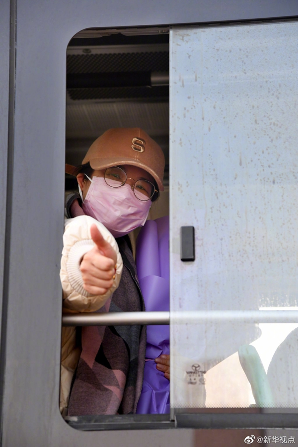 記者看到,出院患者生命體征和精神狀態(tài)都有明顯改觀,均無需攙扶,可獨立行走。一名66歲的患者臨行前,連連向前來送行的醫(yī)護人員鞠躬致謝。