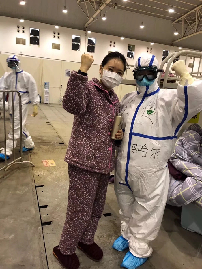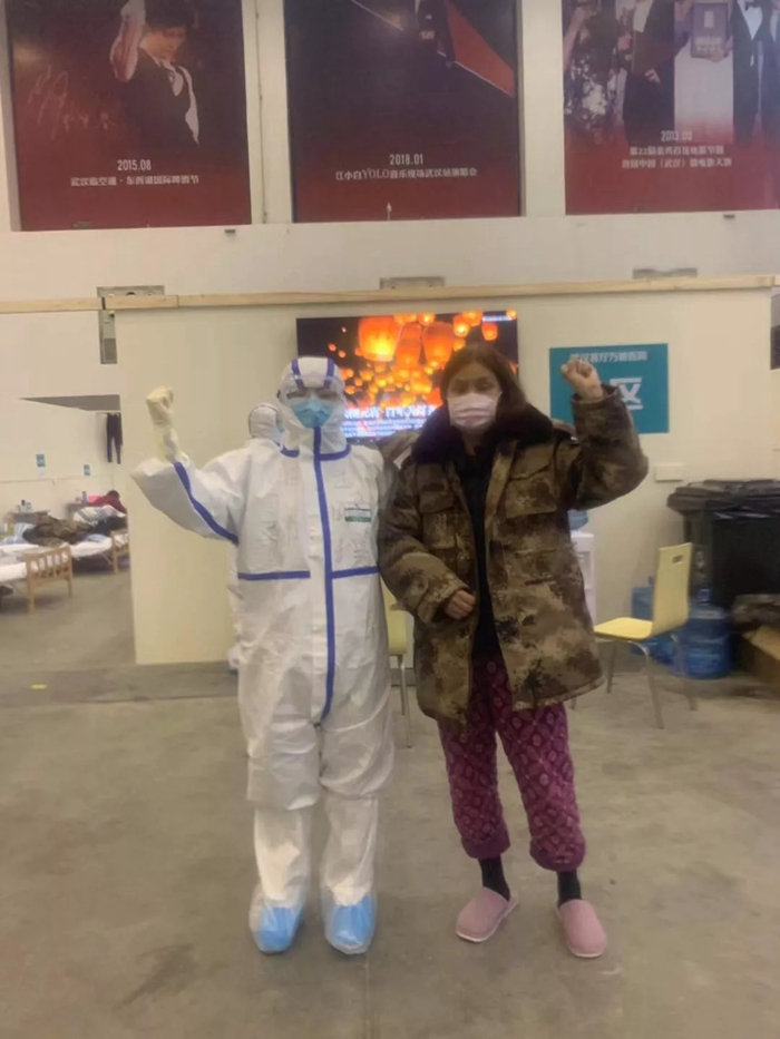 咱們艙里面是輕癥患者,他們特別開心,新疆的古麗來了!他們本來是各種情緒都有,但是我一進(jìn)去給他們跳舞,他們就覺得放松了。然后又看他們吃飯,陪他們聊天,只要做好防護(hù)沒什么可怕的,隔離了那些病菌咱不能隔離愛。