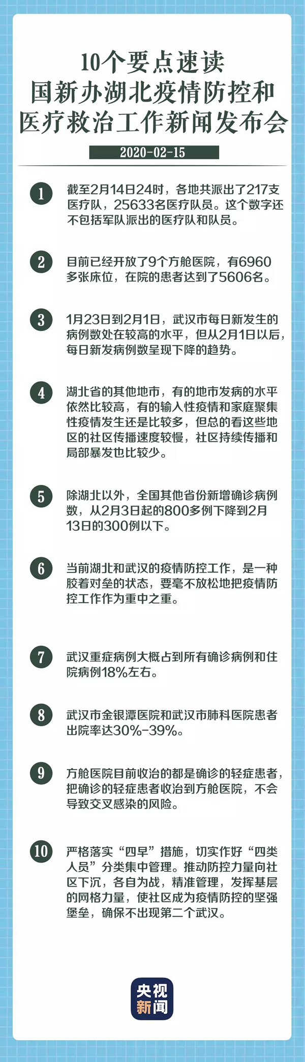 王賀勝:當(dāng)前新冠疫情的防控到了最關(guān)鍵的階段,湖北省武漢市仍然是主戰(zhàn)場(chǎng),醫(yī)療救治工作堅(jiān)持把提高收治率、治愈率,降低感染率、病亡率作為重中之重。推動(dòng)防控力量向社區(qū)下沉,各自為戰(zhàn),精準(zhǔn)管理,發(fā)揮基層的網(wǎng)格力量,使社區(qū)成為疫情防控的堅(jiān)強(qiáng)堡壘,確保不出現(xiàn)第二個(gè)武漢。