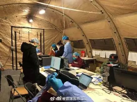 武漢東西湖方艙醫(yī)院醫(yī)護(hù)人員在為病人進(jìn)行出院準(zhǔn)備 | 圖自@武漢發(fā)布