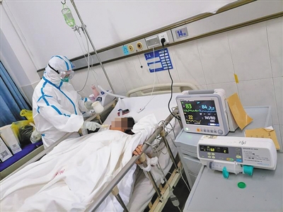 醫(yī)護(hù)人員正在為確診患者治療。荊州市胸科醫(yī)院供圖