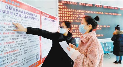 2月16日,江西省宜豐縣勞動(dòng)就業(yè)局大廳,求職人員在了解招工信息。 聶云峰攝(中經(jīng)視覺)