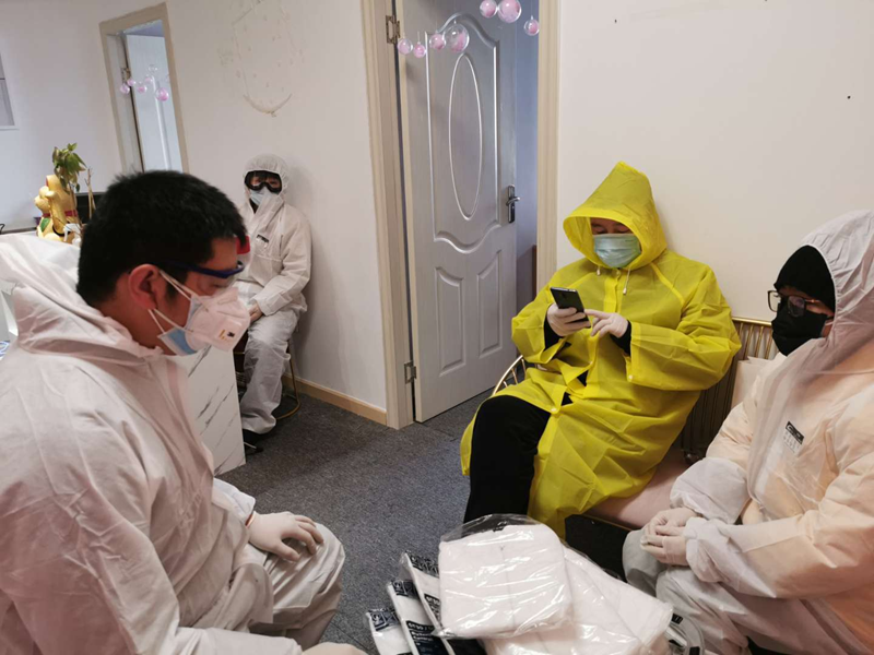 中午有別人贈送給我們的面包、牛奶、方便面,我們躲在一個房間湊合著弄一下,要不就不吃,能堅持就不吃。一天吃不了什么東西,而且又戴著口罩、穿著防護(hù)服。最后累得不想說話,坐著,發(fā)個呆,休息一會兒,然后再回家。