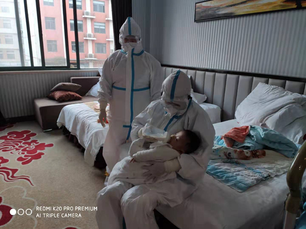 新華社合肥2月12日電(記者吳慧珺 劉美子)“寶寶不哭,寶寶最乖咯……”11日下午,在安徽省安慶市迎江區(qū)集中隔離醫(yī)學(xué)觀察點(diǎn),迎江區(qū)孝肅路街道社區(qū)衛(wèi)生服務(wù)中心護(hù)士嵇群懷里正抱著一個(gè)2個(gè)多月大的寶寶,身邊一個(gè)4歲的小女孩在窗戶(hù)邊曬著太陽(yáng)讀著繪本。其實(shí),他們都不是她的孩子,而是安慶市一個(gè)感染了新冠肺炎家庭的兩個(gè)孩子。