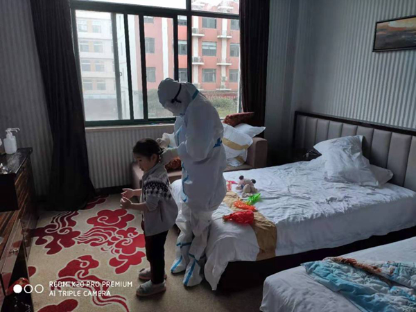 一大家子被隔離,兩個(gè)孩子不能丟在家里沒(méi)人管,這給安慶市迎江區(qū)疫情防控指揮部安置組出了道難題。“誰(shuí)來(lái)照顧已是密切接觸者的兩個(gè)年幼的孩子呢?”安慶市迎江區(qū)濱江街道黨工委書(shū)記趙明來(lái)告訴記者,大家商議之后,決定把兩個(gè)小家伙送到隔離醫(yī)學(xué)觀察點(diǎn),由專(zhuān)業(yè)的醫(yī)護(hù)人員照顧。