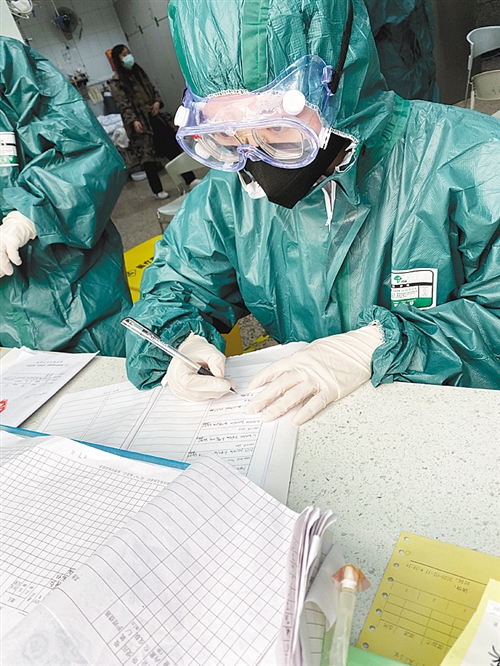 2月11日,賈娜重新穿上防護(hù)服,回到了急診科,每天在搶救室不停歇地為患者打針、補液、抽血、記錄、上呼吸機……