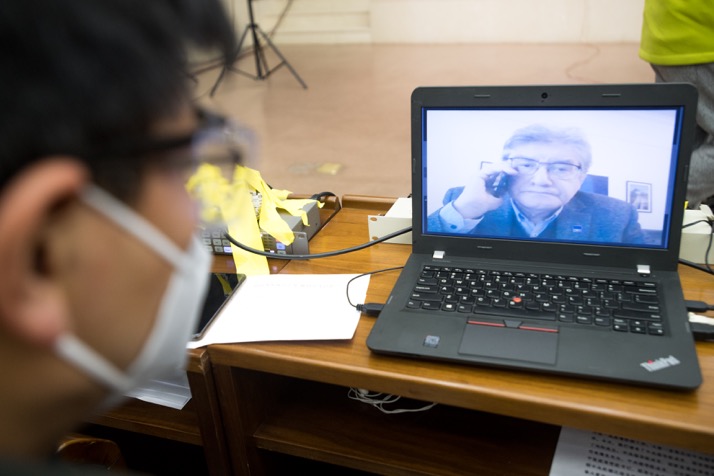 記者通過視頻連線提問。新華社記者肖藝九攝。