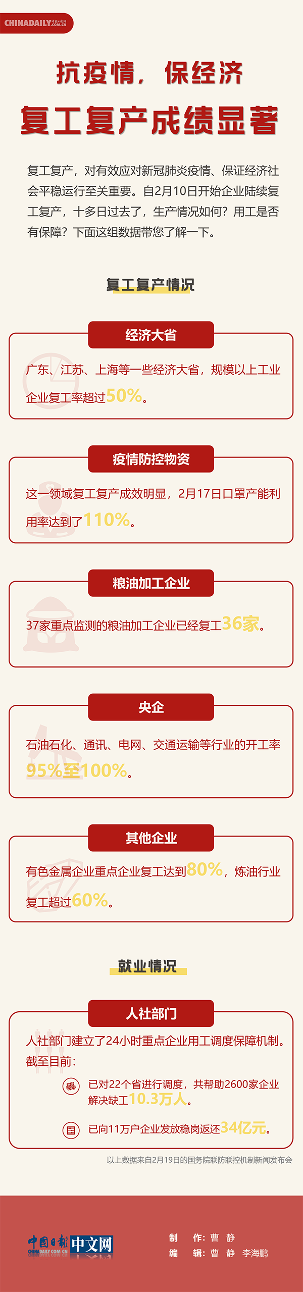 復工復產(chǎn),對有效應對新冠肺炎疫情、保證經(jīng)濟社會平穩(wěn)運行至關(guān)重要。自2月10日開始企業(yè)陸續(xù)復工復產(chǎn),十多日過去了,生產(chǎn)情況如何?用工是否有保障?下面這組數(shù)據(jù)帶您了解一下。