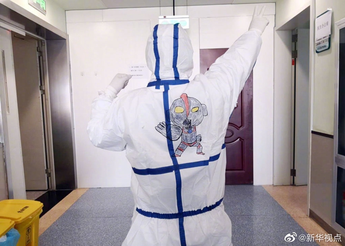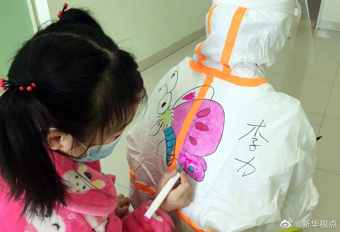 孩子別怕,我們一起在防護(hù)服上畫畫-新華網(wǎng)