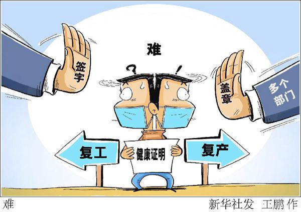 根據(jù)中央部署,全國(guó)不少地方在嚴(yán)抓疫情防控的基礎(chǔ)上,正逐步開(kāi)展復(fù)工復(fù)產(chǎn)?!靶氯A視點(diǎn)”記者接到一些群眾和企業(yè)反映,返程上班和恢復(fù)生產(chǎn),在辦理相關(guān)證明過(guò)程中遭遇不少形式主義的煩惱。