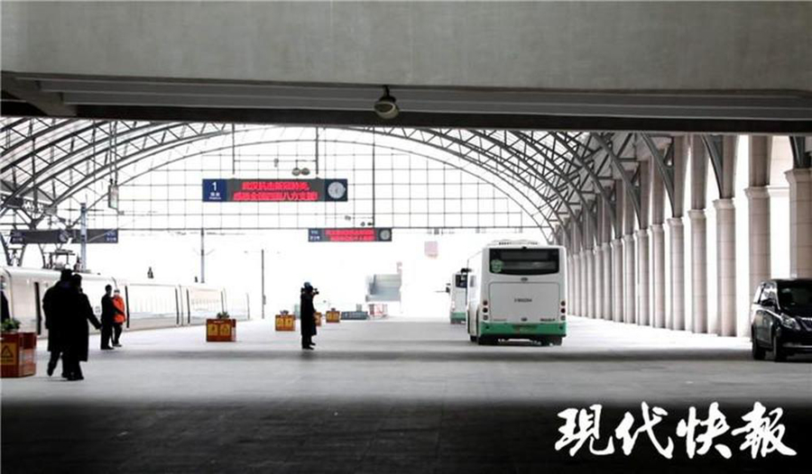 1 點 10 分,一列動車緩緩停靠在武漢漢口火車站,醫(yī)療隊從車上搬下了二三十箱防護物資。