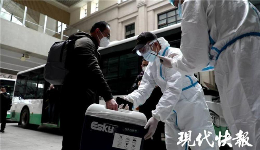 2 月 24 日下午 1 點 10 分,第 11 批江蘇援武漢醫(yī)療隊 31 人抵達武漢,他們將對新冠肺炎患者和一線醫(yī)護人員展開心理疏導。此外,他們還肩負著一項重要使命——來自江蘇的 3000 毫升康復者血漿,也隨隊運抵湖北。