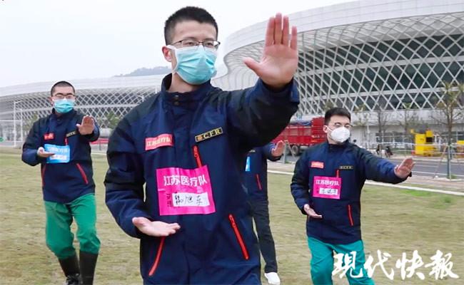 目前,這套 " 簡化六式太極操 " 教學(xué)視頻由國家中醫(yī)醫(yī)療隊(duì)江蘇隊(duì)和現(xiàn)代快報聯(lián)合制作完成,將向江蘇援湖北醫(yī)療隊(duì) 2804 名成員推廣。" 這條視頻,男護(hù)太極團(tuán)是把六式太極操做了兩遍演示,醫(yī)護(hù)人員身體健康的情況下,打兩遍并不會感覺吃力。" 陸敏表示,希望這套太極操能廣為傳播,讓更多抗疫工作者、新冠肺炎患者都能學(xué)會,早日在 " 戰(zhàn)役 " 中獲勝。(特派記者 是鐘寅 / 文 張浩然 / 攝)