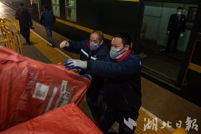 幾分鐘前,這趟車將110余件醫(yī)療物資運抵武漢。武昌火車站行包車間的10多名裝卸工早早守在站臺上,他們要趕在10分鐘內(nèi),將這批物資卸下轉(zhuǎn)運。