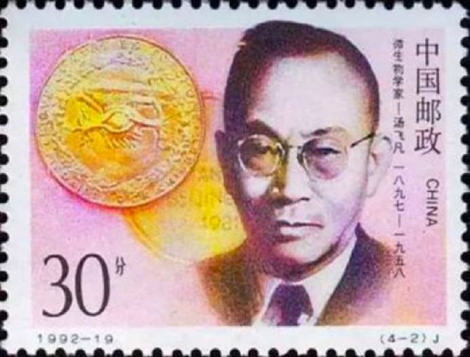 上世紀(jì)50年代,中國50%的人都患有沙眼,無數(shù)人因此失明。1955年,湯飛凡在世界上第一次分離出沙眼衣原體,論文發(fā)表后在國際科學(xué)界引起巨大反響,并改良治療方法,大大降低了中國的沙眼感染率。為紀(jì)念他的卓越貢獻(xiàn),中國于1992年11月22日發(fā)行了湯飛凡紀(jì)念郵票。