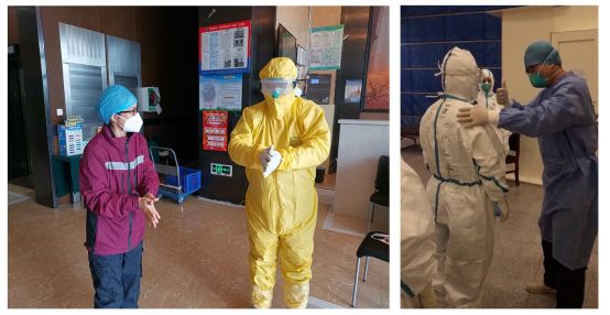 “在高強(qiáng)度的工作之后,許多一線的戰(zhàn)友們無(wú)法仔細(xì)精準(zhǔn)地按照院感要求去脫防護(hù)用品。例如,有的人忘記要先脫什么;有的人忘記脫口罩不能接觸口罩外面;有的人摘口罩、脫防護(hù)服時(shí)太快……這個(gè)時(shí)候就需要我們來(lái)提醒、幫助他們?!编崟岳蛘f(shuō),“有一次,一位醫(yī)生第一次出艙十分緊張,手一直發(fā)抖,甚至忘了怎么脫防護(hù)用品。我安慰她說(shuō),不要緊張,慢慢來(lái),我會(huì)一步一步提醒你怎么完成。我相信第二次她就不會(huì)這樣緊張,能夠淡定出艙?!?/p>