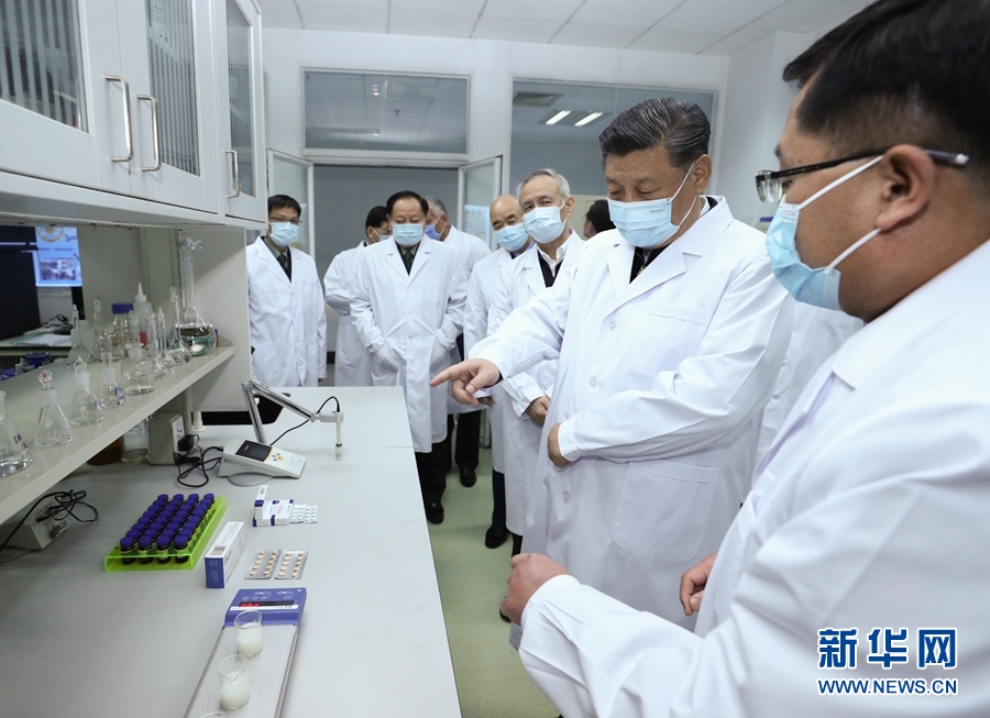 2日下午,習(xí)近平首先來到軍事醫(yī)學(xué)研究院,聽取研究院關(guān)于新冠肺炎疫情防控科研攻關(guān)的總體情況匯報(bào),結(jié)合展板和實(shí)物了解疫苗和抗體研制、藥物篩選、病毒致病機(jī)理研究、快速檢測試劑研究和應(yīng)用等進(jìn)展情況。在儀器測試樓,習(xí)近平察看了重大疫情應(yīng)急防控藥物研究室,向堅(jiān)守崗位、奮力攻關(guān)的一線專家和科研人員表示親切慰問。他強(qiáng)調(diào),提高治愈率、降低病亡率,最終戰(zhàn)勝疫情,關(guān)鍵要靠科技。習(xí)近平指出,新冠肺炎疫情發(fā)生以來,軍事醫(yī)學(xué)研究院堅(jiān)決貫徹黨中央和中央軍委決策指示,聞令即動、爭分奪秒,集中力量展開應(yīng)急科研攻關(guān),取得了階段性成果,充分展現(xiàn)了人民軍隊(duì)忠于黨、忠于人民的政治本色和敢打硬仗、善打勝仗的優(yōu)良作風(fēng)。習(xí)近平希望他們再接再厲,充分發(fā)揮突擊隊(duì)和主力軍作用,盡快研制出安全有效的疫苗、藥物、檢測試劑,全力滿足抗擊疫情需要。要堅(jiān)持在疫情可溯、可診、可防、可治、可控方面合力攻關(guān),通過打這場硬仗,掌握更多具有自主知識產(chǎn)權(quán)的核心科技,拿出更多硬核產(chǎn)品,為維護(hù)人民生命安全和身體健康、維護(hù)國家戰(zhàn)略安全作出更大貢獻(xiàn)。
