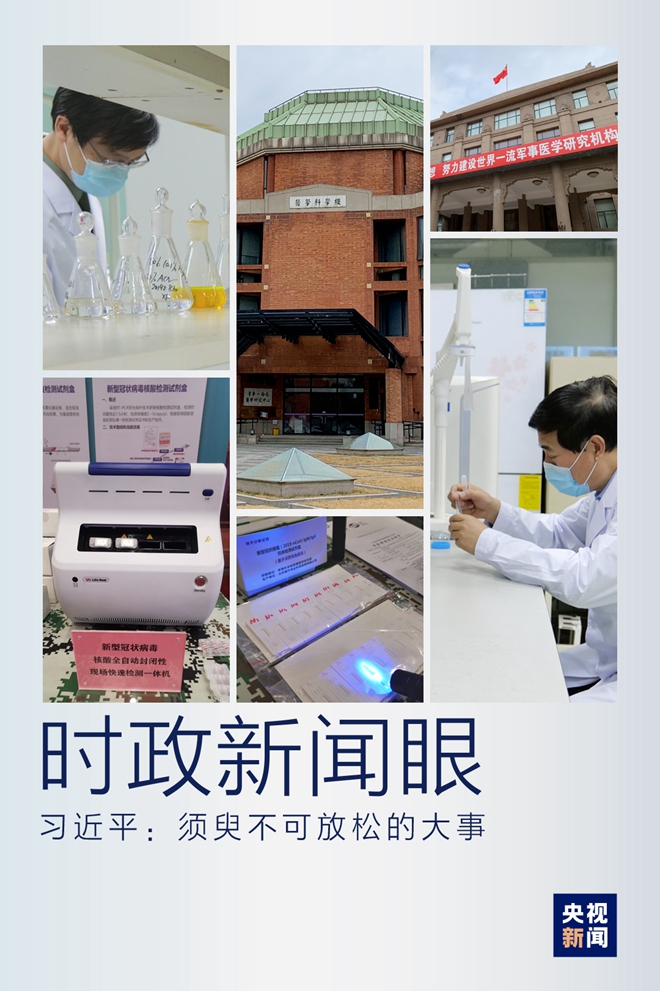 2日下午,習(xí)近平首先來(lái)到軍事醫(yī)學(xué)研究院考察。疫情發(fā)生以來(lái),軍事醫(yī)學(xué)研究院集中力量展開應(yīng)急科研攻關(guān),取得了階段性成果。