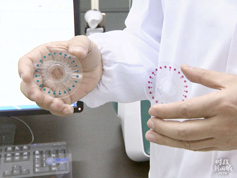 圖中芯片是清華大學(xué)醫(yī)學(xué)院程京院士團(tuán)隊(duì)成功研制出的,用于呼吸道多病毒檢測(cè)的全新微流控芯片。