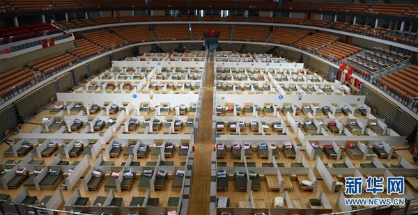 這是武漢體育中心方艙醫(yī)院(2月12日攝)。新華社記者 程敏 攝