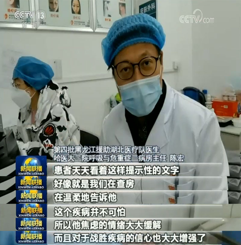 “繼續(xù)努力,早日出院”“新冠必?cái)?,您必勝”“?jiān)持就是勝利”,在武漢市第一醫(yī)院16樓重癥病區(qū),幾乎每位患者床頭都貼有一張寫著鼓勵(lì)話語(yǔ)的淡粉色紙卡,而這些都出自前來支援的哈爾濱醫(yī)科大學(xué)附屬第二醫(yī)院呼吸科陳宏醫(yī)生之手。