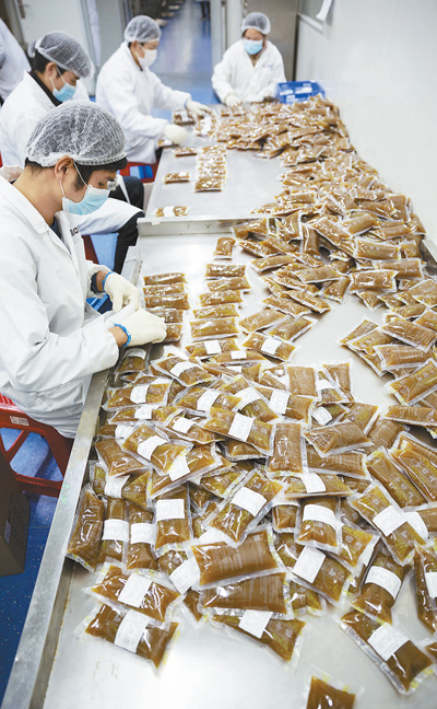 3月2日,湖北武漢一家中藥公司,工人正在為灌裝好的中藥貼上標(biāo)簽。據(jù)悉,該公司在疫情期間,按照國(guó)家衛(wèi)生健康委辦公廳和國(guó)家中醫(yī)藥管理局辦公室聯(lián)合印發(fā)的《新型冠狀病毒肺炎診療方案(試行第六版)》中推薦的藥方,為武漢市7家醫(yī)院、10個(gè)方艙醫(yī)院等單位生產(chǎn)、煎煮和配送中藥湯劑。記者 張武軍攝