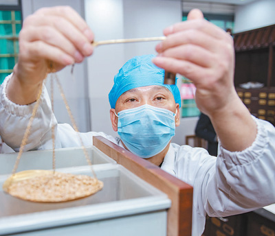 3月2日,福建省泉州市德化縣醫(yī)院的中藥師在根據(jù)處方調(diào)配中藥。邵玉姿 許華森攝影報(bào)道