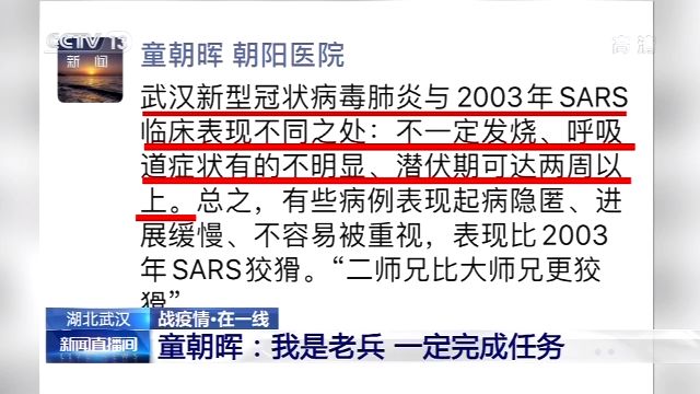 1月20日:與2003年SARS相比,新冠肺炎呼吸道癥狀不明顯,潛伏期可達(dá)兩周以上。